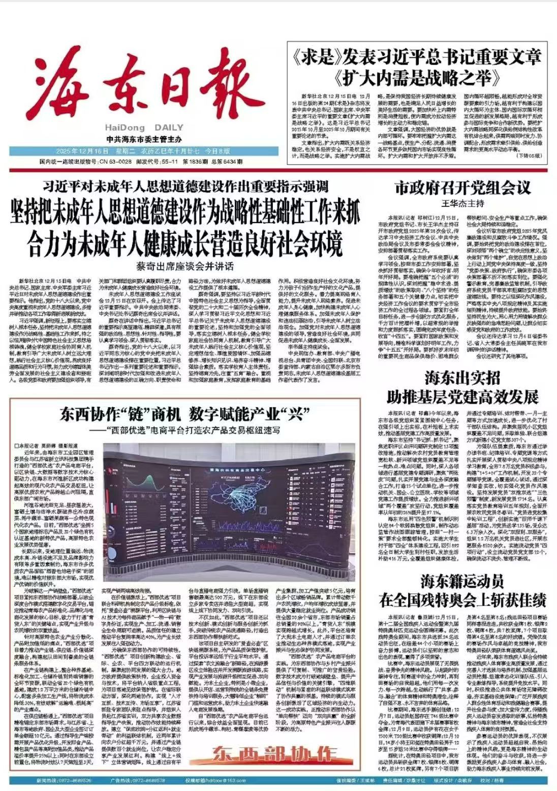 近年來,由海東市工業(yè)園區(qū)管理委員會與江蘇省新立訊科技集團攜手打造的“西部優(yōu)選”農(nóng)產(chǎn)品電商平臺,以區(qū)塊鏈、大數(shù)據(jù)等數(shù)字技術為核心驅(qū)動力,在海東市河湟新區(qū)成功構建起高效的現(xiàn)代化農(nóng)產(chǎn)品交易樞紐,讓高原優(yōu)質(zhì)農(nóng)牧產(chǎn)品跨越山河阻隔,直供東部廣闊市場。