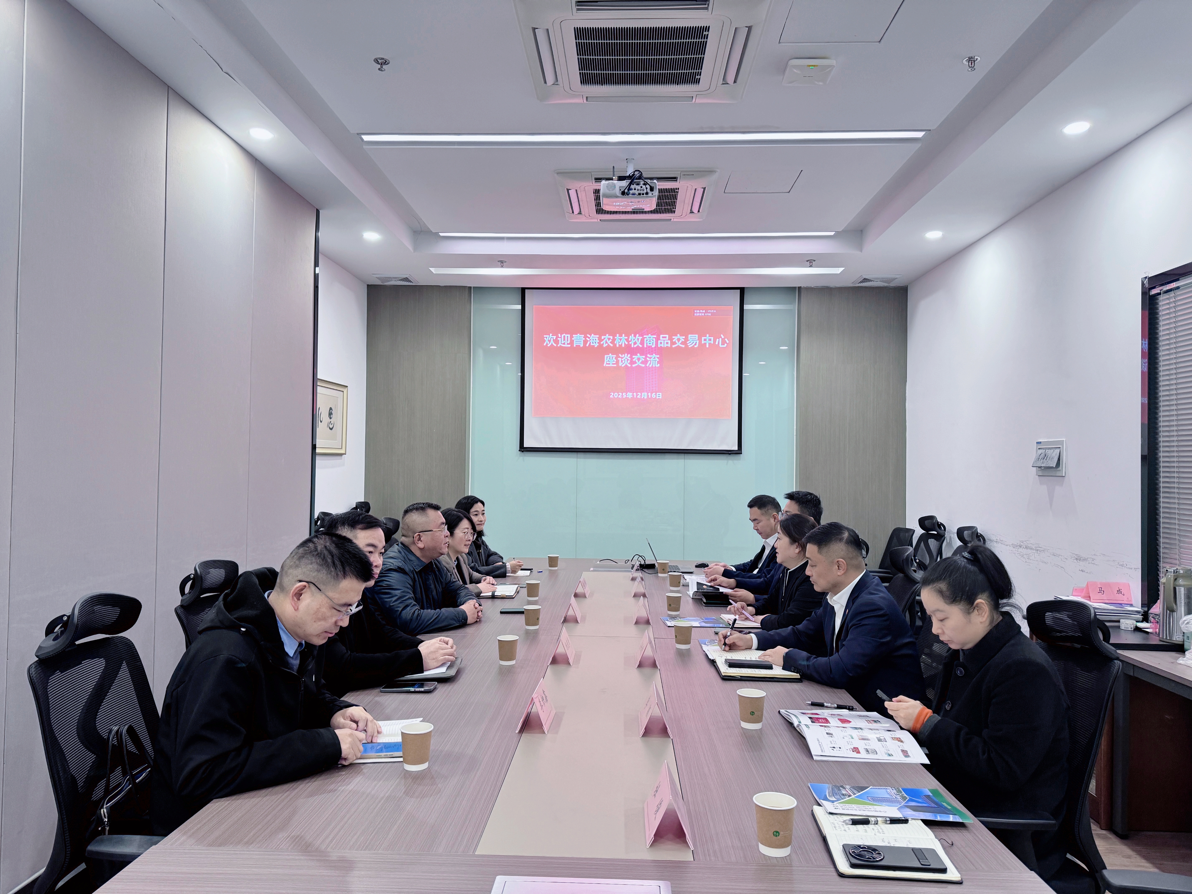 2025年12月16日,為持續深化落實蘇青兩省省長調研青海農林牧商品交易中心時指示精神,在蘇青協作聯動下,新立訊科技集團董事長(兼青海、華東、川藏農產品交易中心董事長)毛霖、常務副總經理李偉,青海交易中心副總經理楊慶慶、電商總監李積鑫等赴江蘇鐘山電子商務有限公司調研學習,與董事長劉蓓及相關部門負責人開展座談交流。