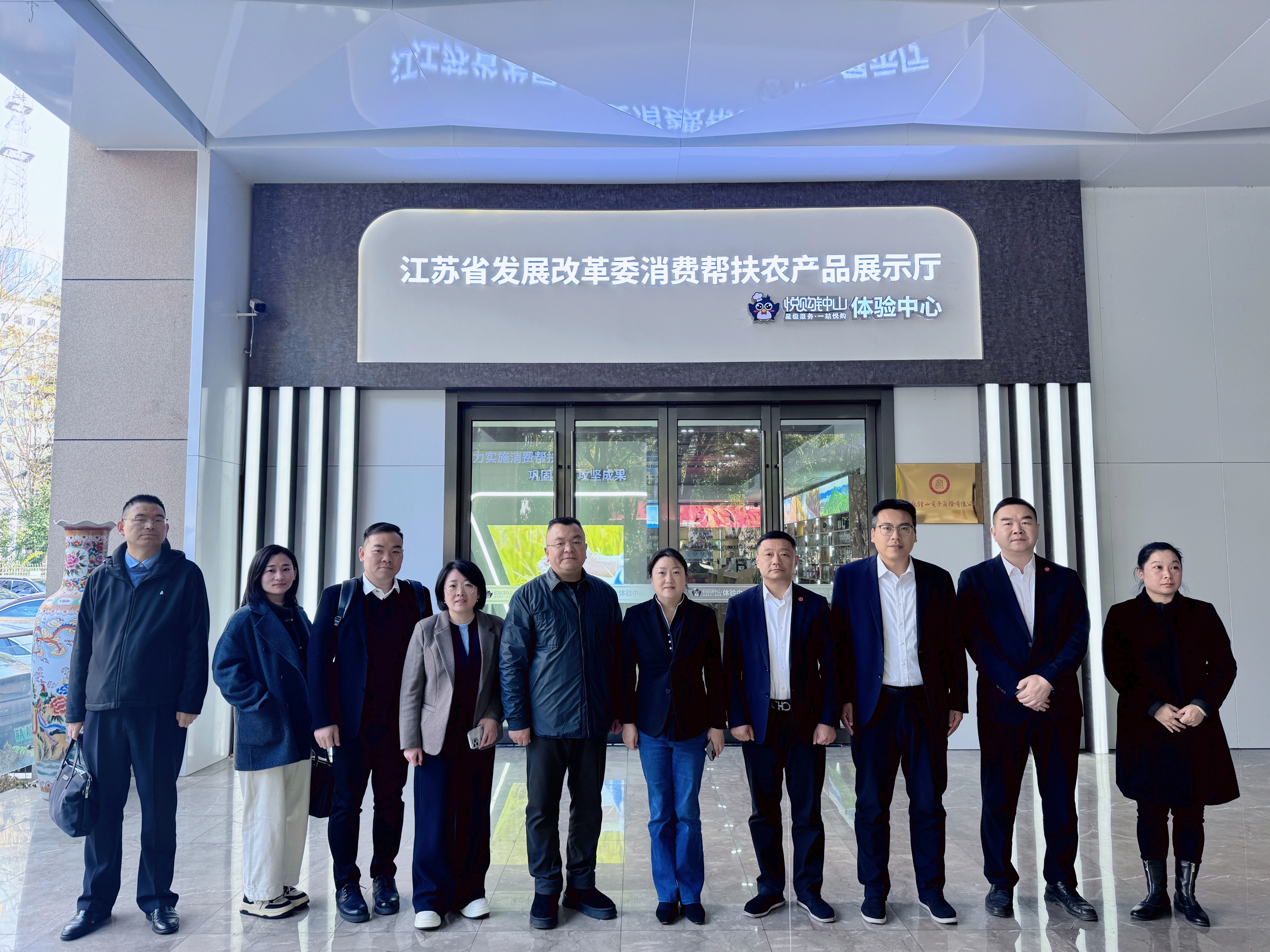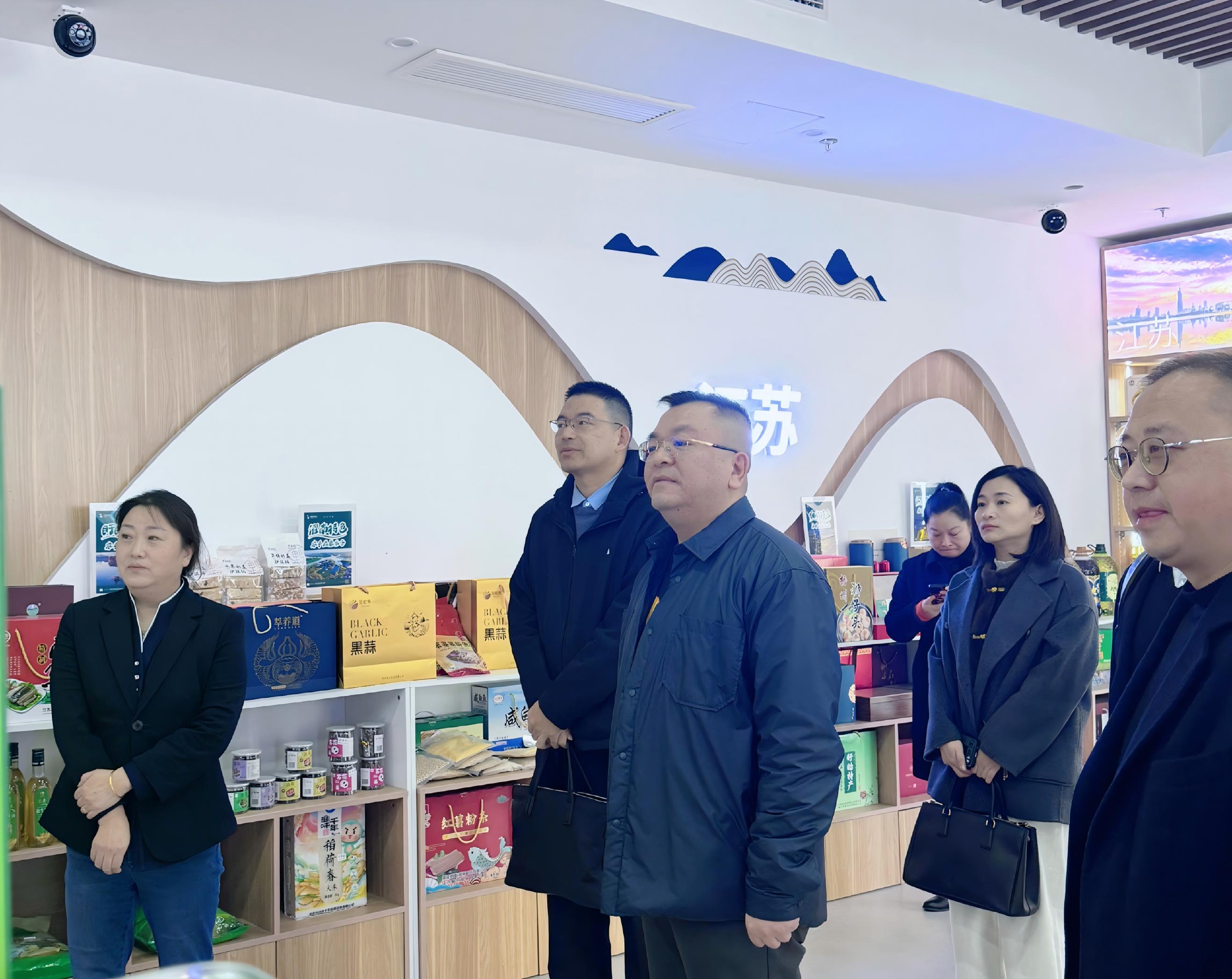 座談前,大家參觀了江蘇省發展改革委消費幫扶農產品展示廳悅購鐘山體驗中心。展廳由江蘇鐘山賓館集團有限公司與江蘇省發改委聯合打造,集展示、體驗、銷售、洽談于一體,設有農產品展示區、云上專區、品鑒區及直播區,通過“線上+線下”融合,為東西部農產品搭建直通長三角市場橋梁和紐帶。