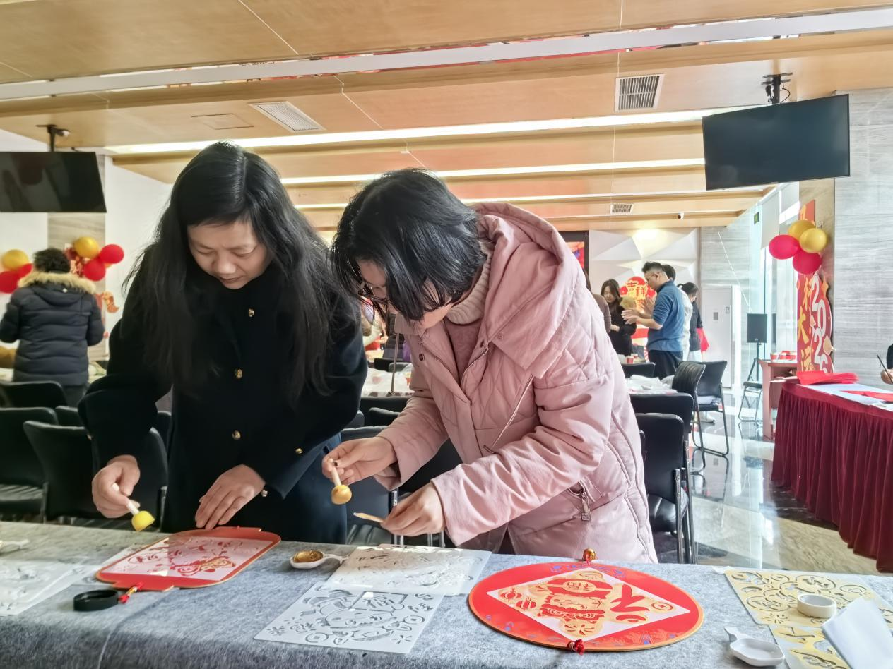 寫福字對聯(lián)及民俗拓印區(qū),新立訊黨員代表與社區(qū)黨員共同創(chuàng)作,紅紙、毛筆、墨汁與拓印模板成為傳遞新年美好寓意的載體,增添節(jié)日儀式感。
